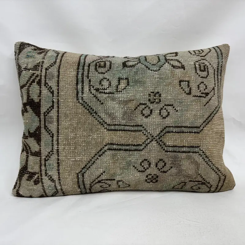 Almohada de lanzamiento Kilim del suroeste beige y marrón, almohada rectangular hecha a mano
