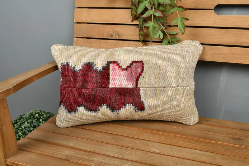 Almohada geométrica 12x20, almohada de lanzamiento beige y rojo bordada