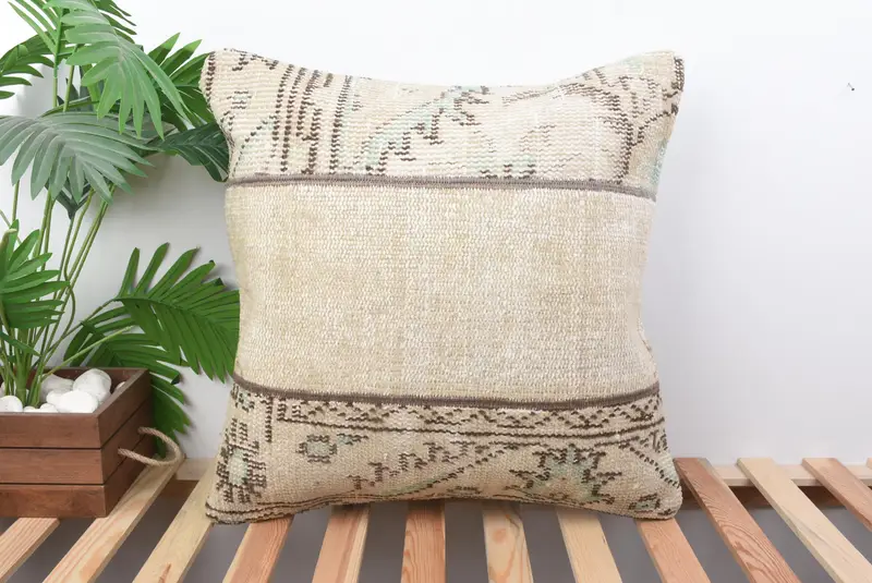 Almohada bordada del suroeste beige, almohada de tiro vintage 22x22