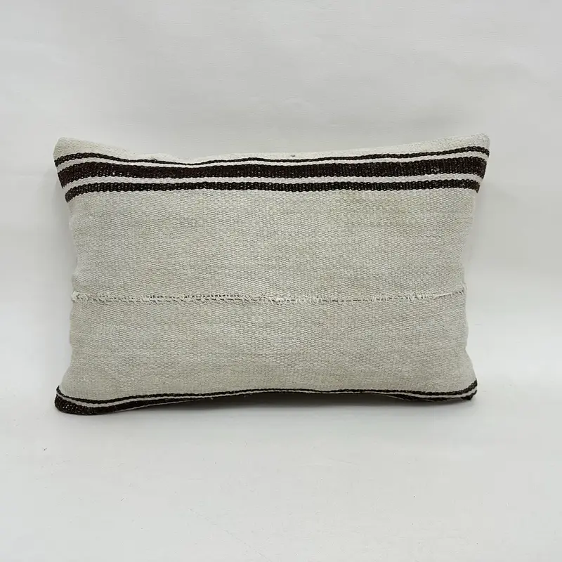 Almohada rectangular de lino con estampado de rayas, almohada de tiro bordada