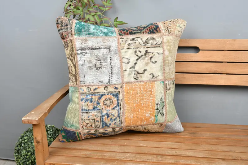 Almohada de lanzamiento de patchwork naranja y verde, almohada bordada 24x24