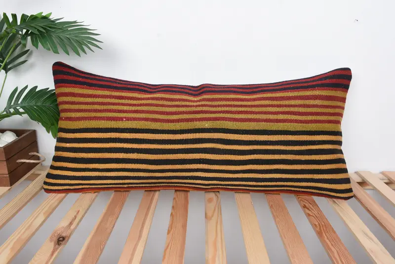 Almohada de tiro de rayas verdes y rojas hecha a mano, almohada bordada vintage