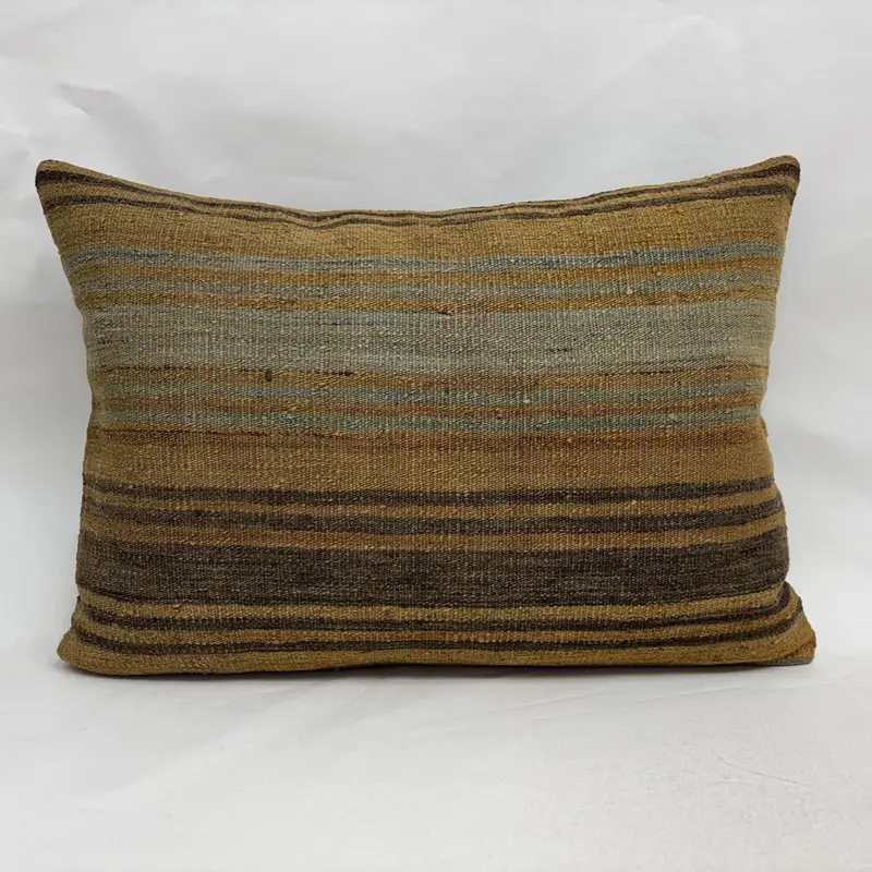 Almohada de tiro a rayas naranja y marrón, cojín bordado 20x28