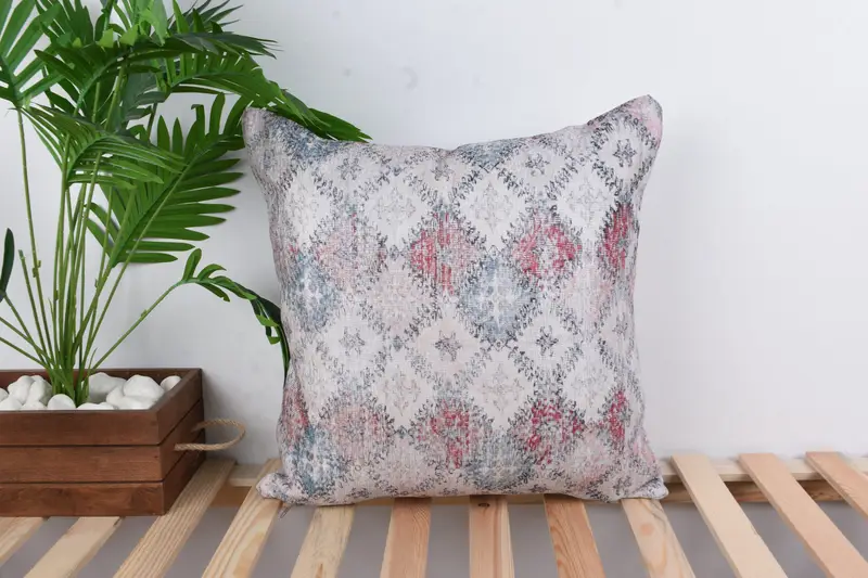 Almohada de tiro bordada hecha a mano, cojín vintage cuadrado con cierre de cremallera