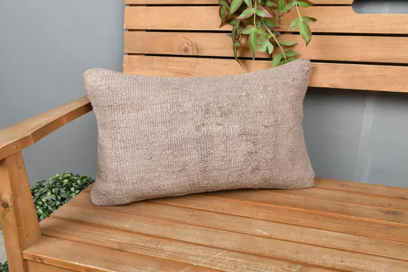 Almohada de tiro del suroeste marrón hecha a mano, almohada de lino rectangular de 12x20