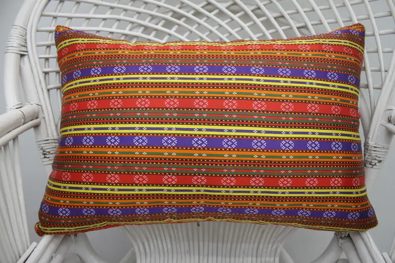 Funda de almohada Kilim hecha a mano, almohada de tiro Boho a rayas