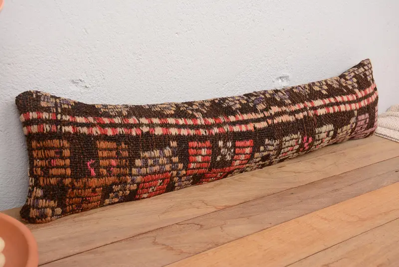 Almohada de tiro bordada marrón y roja, almohada rectangular geométrica