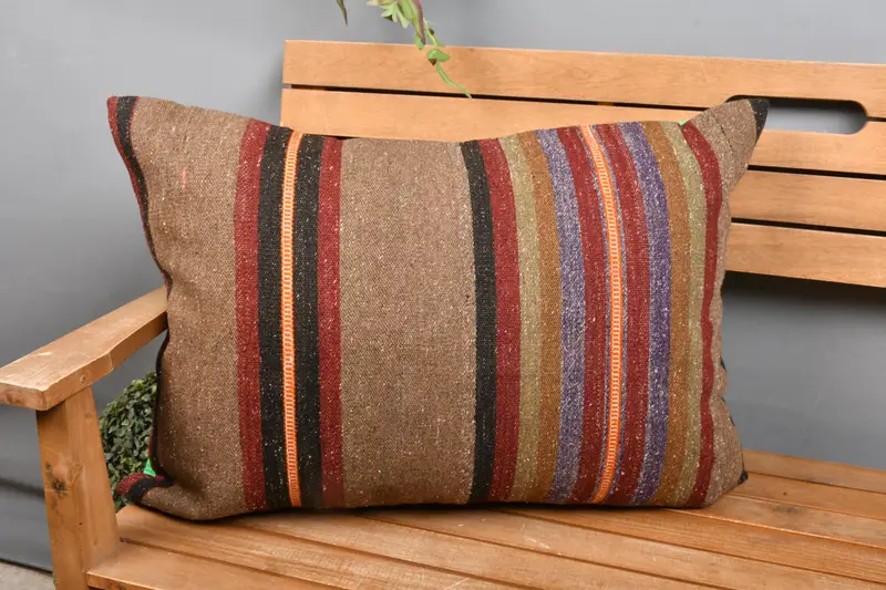 Almohada de tiro de rayas marrones y negras, almohada bordada vintage
