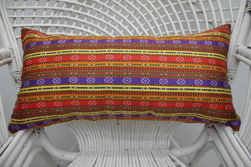 Almohada de lanzamiento rectangular bordada, almohada vintage a rayas