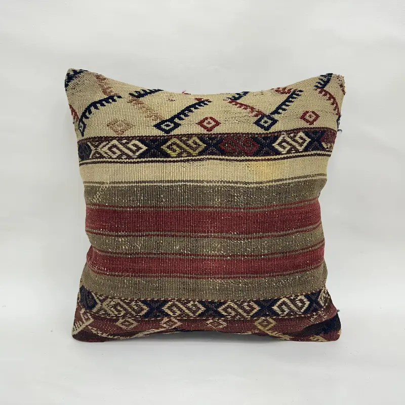Almohada de tiro de rayas marrones y rojas, almohada bordada vintage
