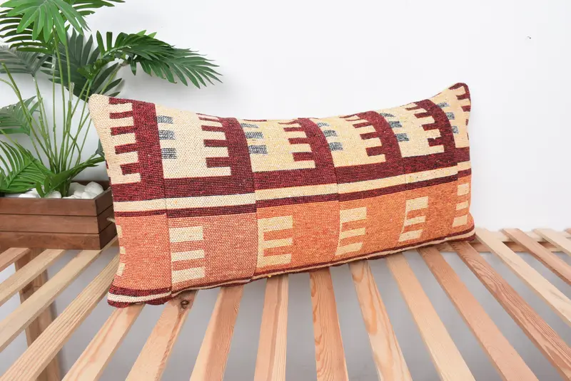 Almohada de lanzamiento bordada del suroeste naranja, cojín vintage hecho a mano