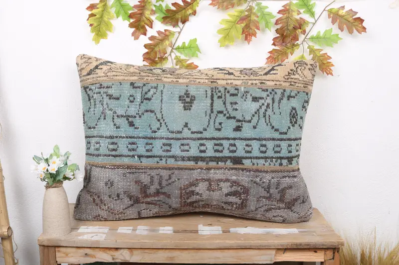 Almohada de lanzamiento de patchwork verde hecha a mano, cojín vintage de 20x28