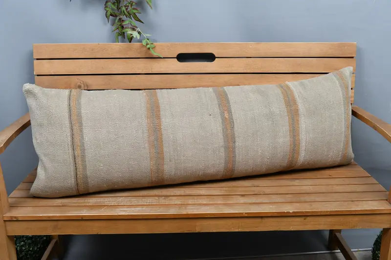Almohada de rayas beige y marrón hecha a mano, almohada de lanzamiento rectangular versátil