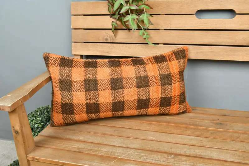 Almohada de tiro a rayas naranja y marrón, cojín de lino hecho a mano 12x24