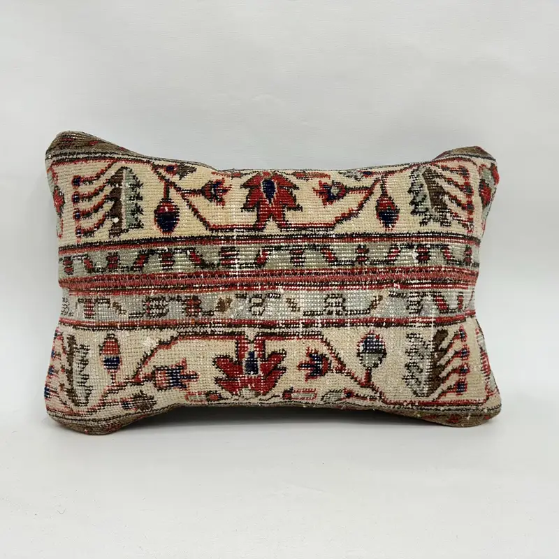 Almohada de lanzamiento de patchwork beige y rojo, cojín bordado 16x24