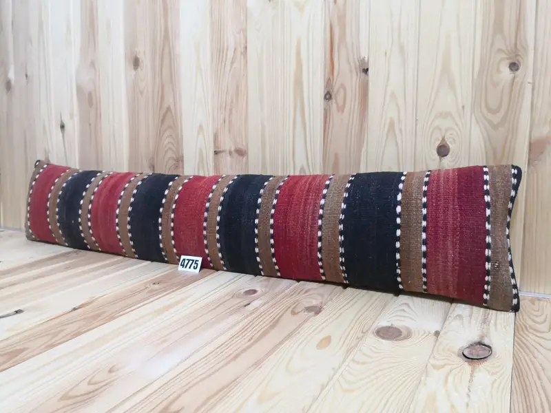 Almohada rectangular de lana a rayas rojas y marrones, almohada vintage hecha a mano