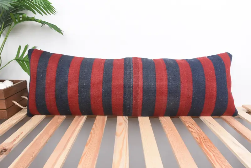 Almohada de rayas rojas con detalles en bronce, almohada de lanzamiento rectangular hecha a mano