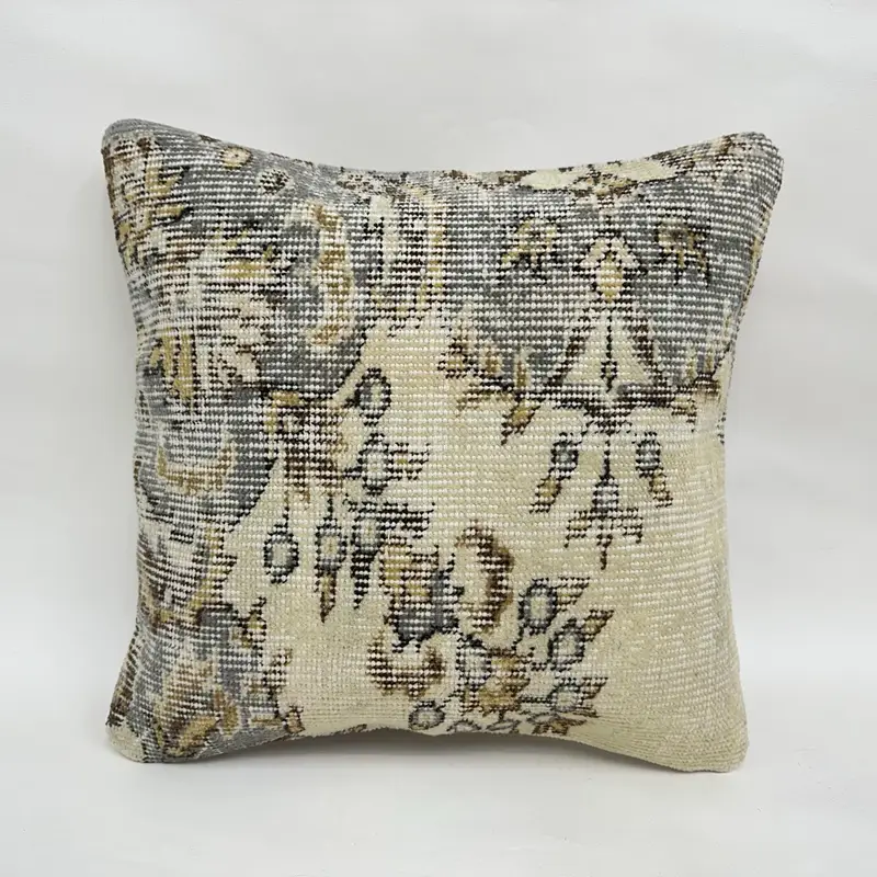 Almohada de tiro de lino beige bordada hecha a mano, almohada floral vintage 18x18