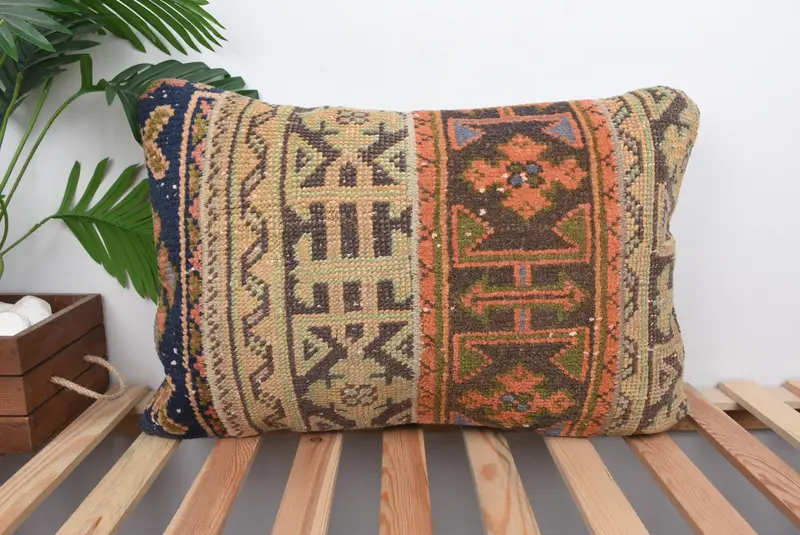 Almohada de lanzamiento de patchwork naranja y bronce, cojín hecho a mano de 16x24