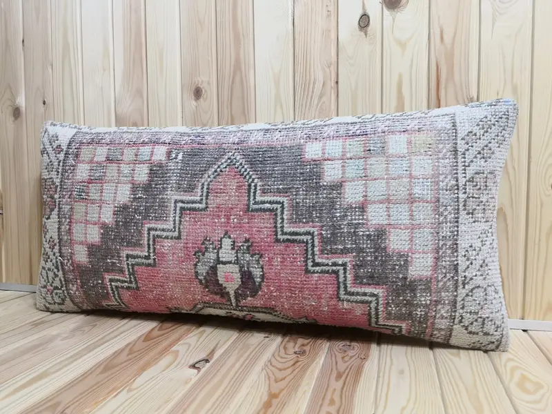 Almohada de lanzamiento de lana bordada hecha a mano, almohada de lanzamiento de diseño geométrico vintage