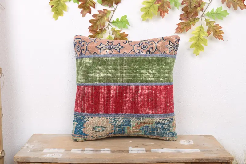 Almohada de lanzamiento de patchwork rojo y verde, cojín bordado 18x18