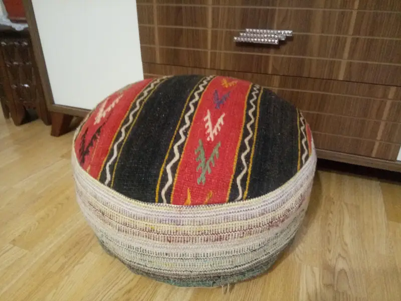 Almohada de lanzamiento de lana a rayas rojas y negras, almohada circular vintage
