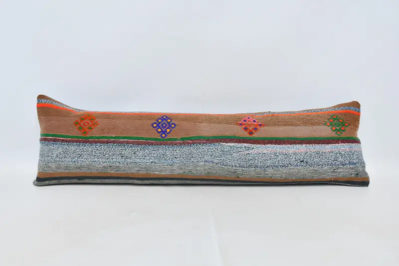 Almohada de cáñamo rectangular marrón y bronce, almohada de lanzamiento floral vintage