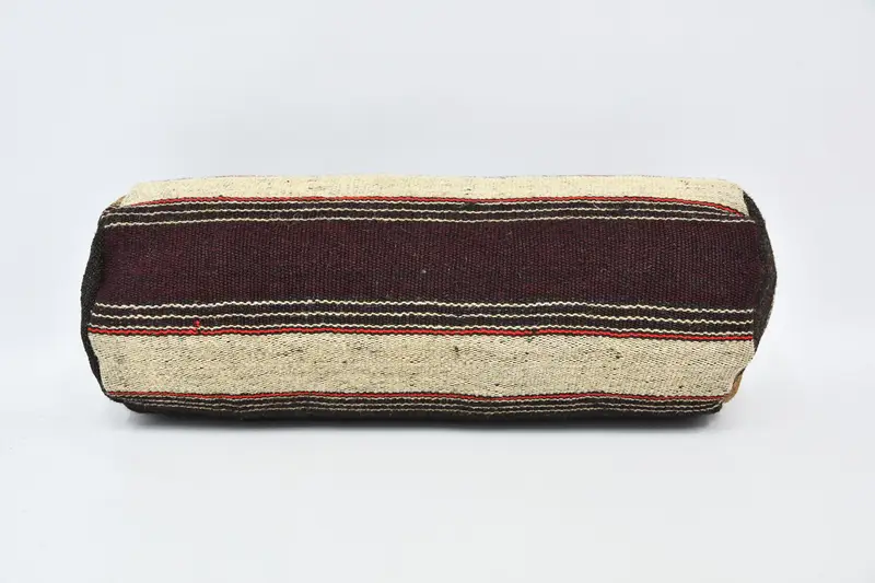 Refuerzo de rayas beige y marrón, almohada de lanzamiento bordada hecha a mano