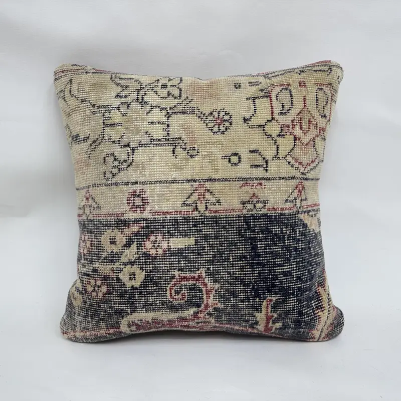 Almohada de tiro bordada beige y marrón, cojín Kilim vintage