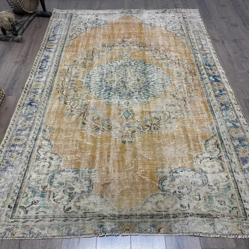 Alfombra vibrante en amarillo y verde, 6,1x9,1 ft, floral y geométrica