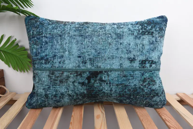 Almohada de lanzamiento de patchwork azul y verde, almohada bordada hecha a mano