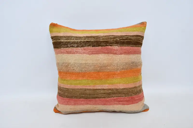 Almohada de lanzamiento vintage bordada, cojín rosa y naranja de 22x22