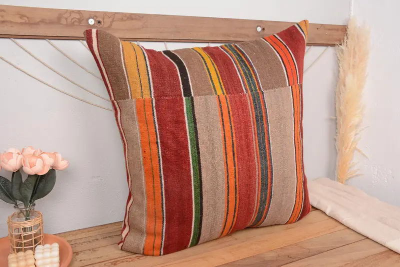 Almohada de tiro de rayas verdes y rojas, almohada bordada vintage