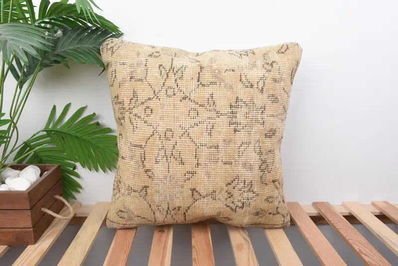 Almohada de lanzamiento bordada del suroeste beige, cojín con cremallera vintage