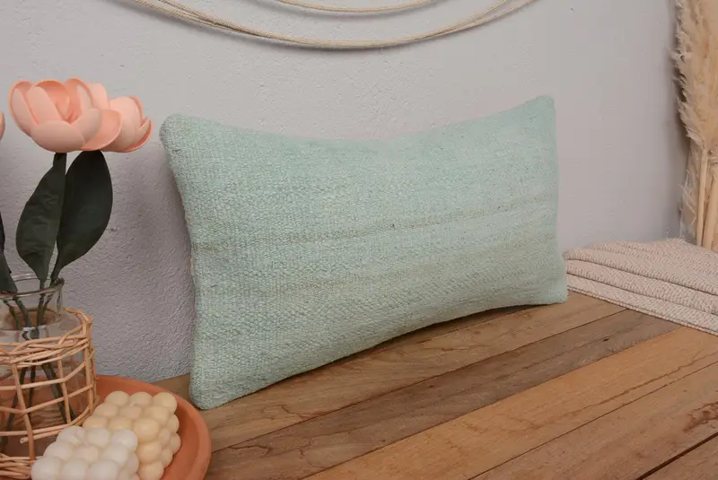 Almohada de rayas verdes y marrones bordadas, almohada de lanzamiento vintage hecha a mano