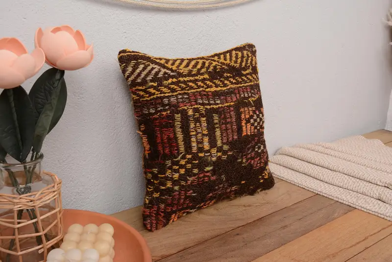 Almohada de lanzamiento geométrico marrón y naranja, cojín bordado 12x12