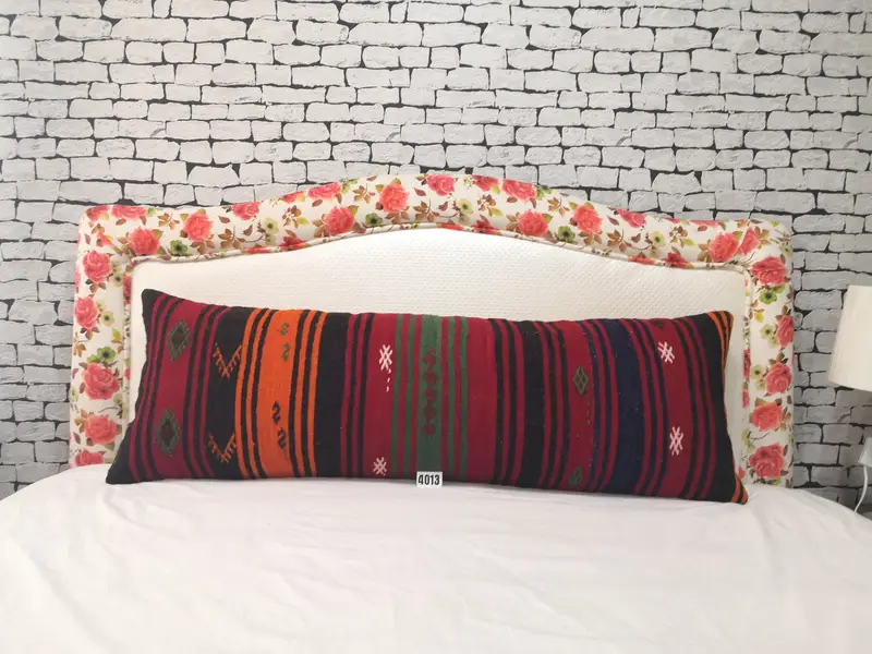 Almohada de lanzamiento de lana a rayas hecha a mano, cojín rectangular de 16x48 pulgadas