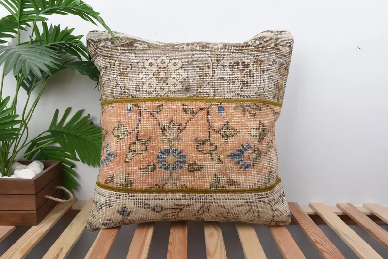 Almohada de lanzamiento de patchwork naranja y marrón, cojín vintage bordado 22x22