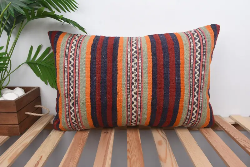 Almohada de rayas naranja y roja, almohada de lanzamiento bordada de 16x24