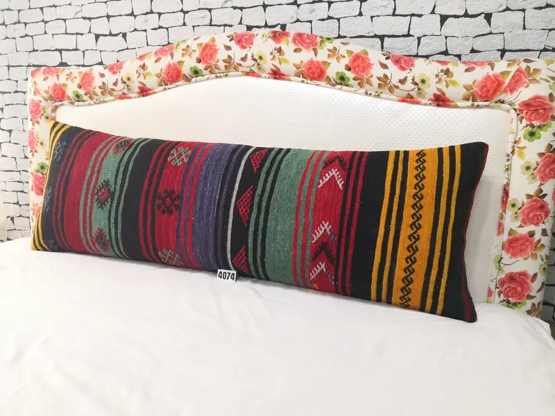 Almohada de lana a rayas hecha a mano, almohada vintage roja y amarilla
