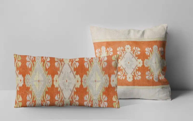 Almohada de lanzamiento naranja del suroeste bordada, almohada rectangular vintage
