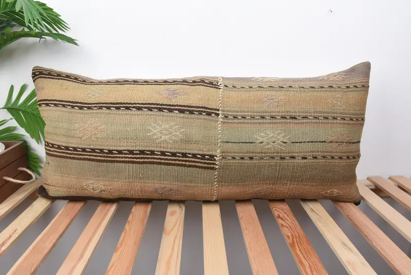Almohada de lanzamiento de patchwork beige y marrón, cojín bordado hecho a mano