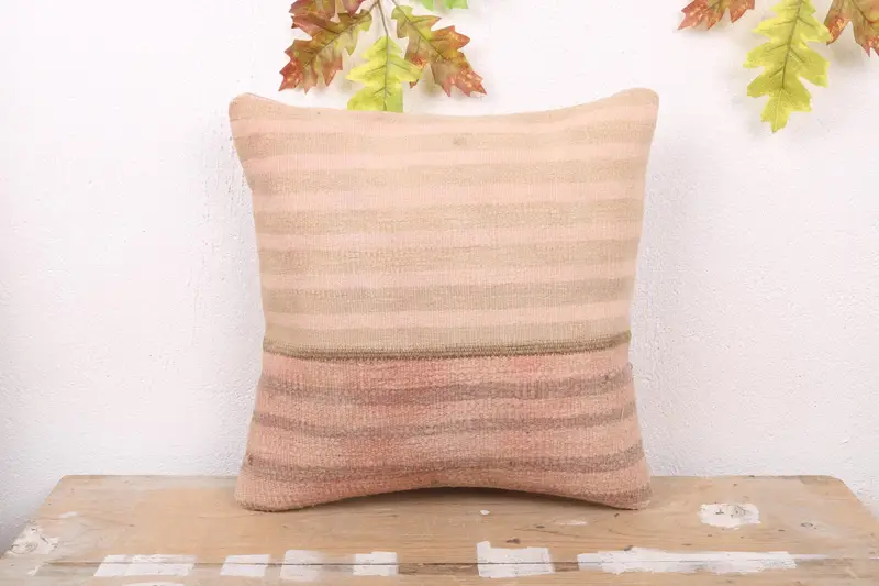 Almohada de tiro a rayas beige y marrón, cojín bordado 16x16