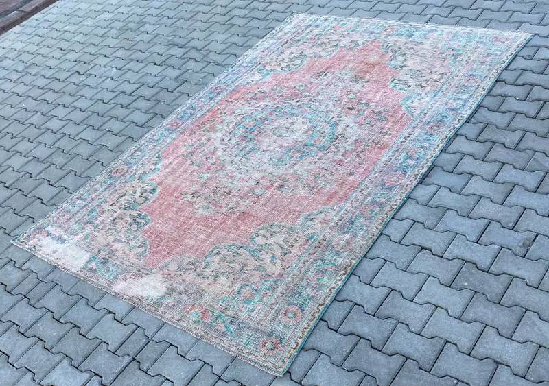 Alfombra roja y azul, 5,9x9,6 ft con motivos florales y geométricos