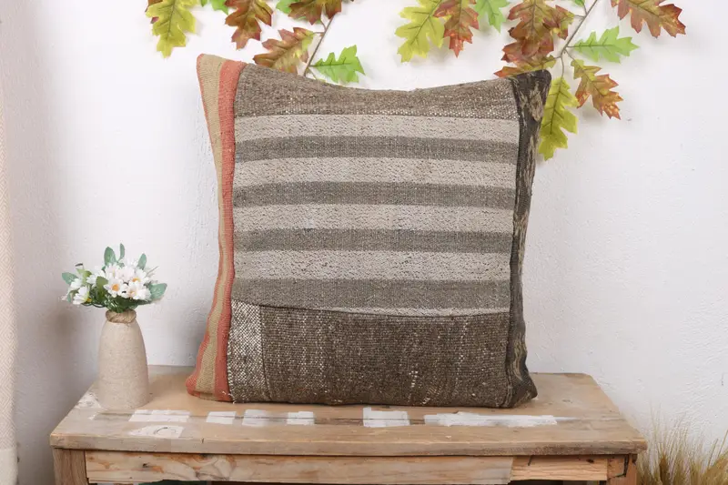 Almohada de tiro patchwork gris y marrón, cojín bordado 22x22