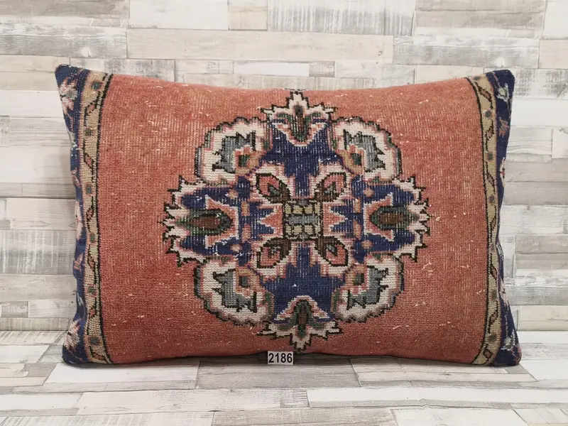 Almohada de lanzamiento rectangular azul y oro rosa, cojín vintage de 36 x 24 pulgadas