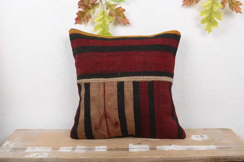 Almohada de lanzamiento de patchwork rojo y beige, cojín bordado 16x16