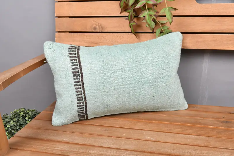 Almohada verde del suroeste hecha a mano, almohada de lanzamiento bordada de 12x20