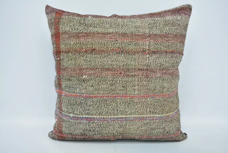 Almohada de tiro a cuadros marrón y rojo, cojín bordado 28x28