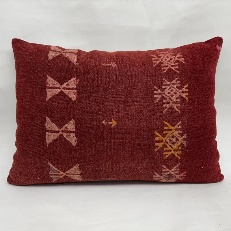 Almohada de lanzamiento bordada del suroeste rojo, cojín vintage hecho a mano